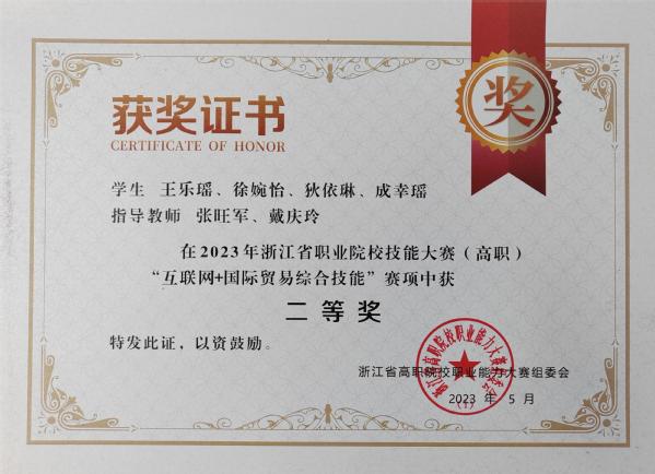 刘芯岐,2023届跨境电子商务专业毕业生,中共党员,在我校学习期间,先后获得第七届ocale全国跨境电商创新创业能力大赛高职组个人特等奖,浙江省第十三届“挑战杯”中荣获省二等奖,2022年浙江省职业院校技能大赛(高职)“互联网+国际贸易综合技能”赛项中获得三等奖,省政府奖学金,第八届浙江省大学生经济管理案例竞赛获得省二等奖等多项荣誉。2023年通过浙江省专升本考试,被宁波大学科学技术学院录取。