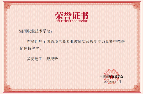 2022年湖州市跨境电子商务学院成立,该学院由我校牵头,以中国(湖州)跨境电子商务综合试验区为依托,联合湖州师范学院、湖州学院、浙江信息工程学校等在湖主要院校、市县(区)跨境电商公共服务中心、主流跨境电商平台、跨境电商龙头企业、园区基地及行业协会共同创建而成,是以培养培训高素质复合型跨境电商技术技能人才为主的产教融合发展机构。