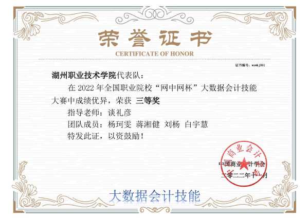 大数据与会计专业自2002年成立以来,历经二十余年建设,取得长足发展,录取分数常年居于全校前三。近年来,本专业学生代表学校参加浙江省职业院校技能大赛高职组会计实务赛项、“科云杯”全国职业院校高职组税务技能大赛、“网中网杯”全国职业院校大数据会计技能大赛、数智化财会职业能力大赛、浙江省大学生财会信息化竞赛等多项专业技能竞赛,荣获三等奖及以上荣誉20余项。