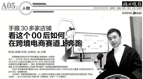 叶文杰,2024届电子商务毕业生,在校期间和团队不仅开发了10余套商用系统,开设了60余家跨境电商店铺,成功注册了8个商标,2022年年度销售额近200万人民币。